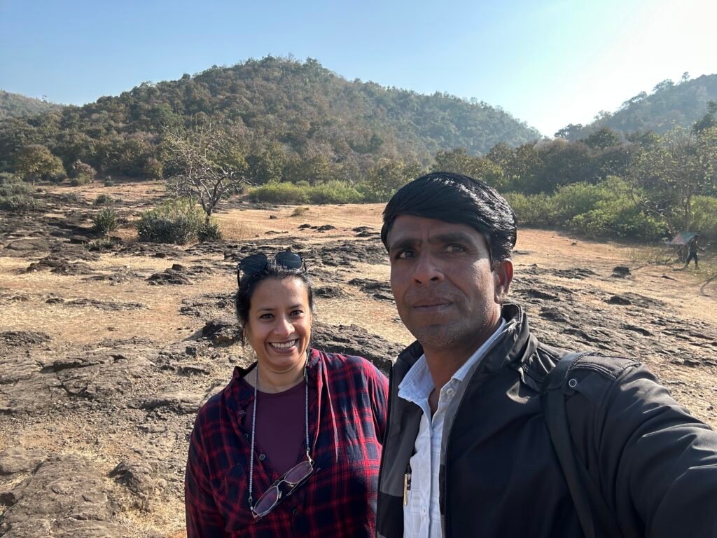 After walking down some 20 mins you will reach a flat valley of black basalt rocks! The view of the valley from here is breathtaking! Towards the opposite side pf the cliff you will see rocks with water falls and naturally created water reservoirs -naturally created by erosion of the water falls during monsoons. These “7 step wells”, seems like Gods creation of water supply for Buddhist values and philosophies to come to the common folk! That’s what I felt when I saw them atleast! Then comes the rocks …. these rocks have rich deposits of semi-precious stones like quartz, amethyst, jade, malachite. crystals which were ground to extract the dyes and pigments for the paintings! Ochres, black and green was used locally. Iron oxide and calcite, amethyst, Jade were richly found here! Then comes the forests. Do you know though every leaf is green, post grinding leaves release different colours!